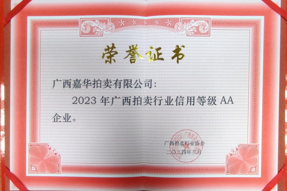 廣西拍賣行業信用等級AA企業